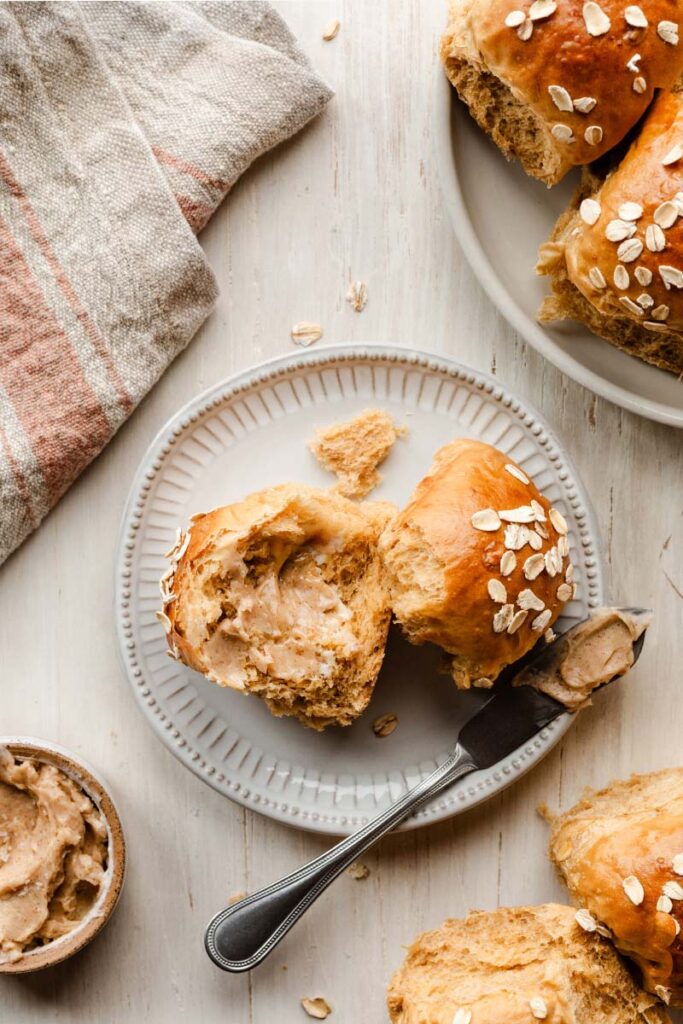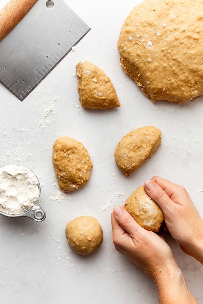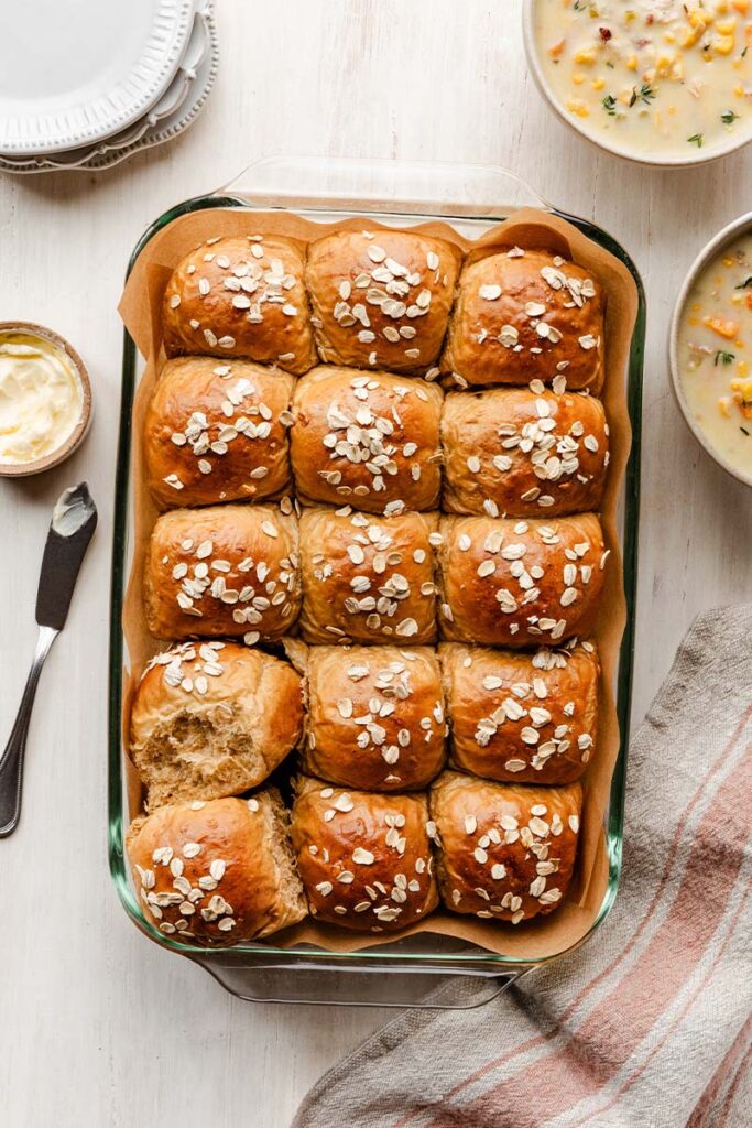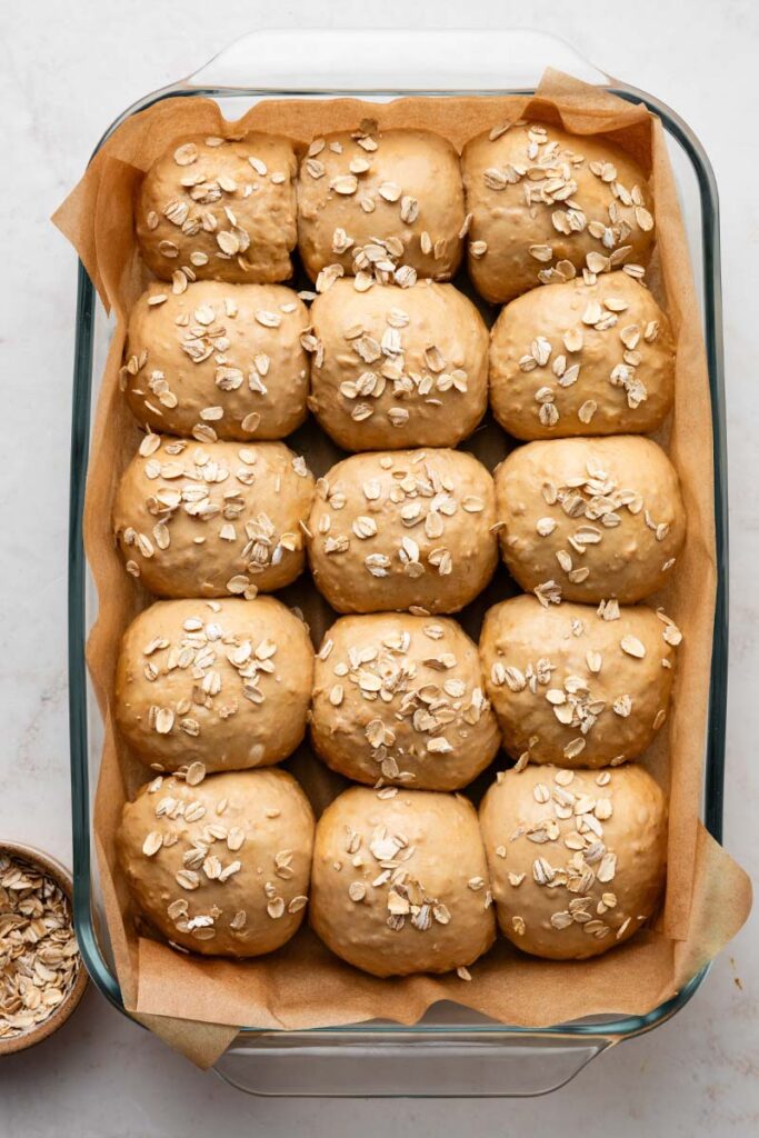Blog > How to make Oatmeal Molasses Dinner Rolls Find A Store How to make Oatmeal Molasses Dinner Rolls Soft and hearty, these oatmeal molasses dinner rolls are irresistibly chewy, lightly sweet, and oh-so-buttery with a warm, nostalgic flavor. Platinum Yeast provides an exceptional rise for fluffy rolls that taste like pure comfort. Read the step-by-step recipe instructions and watch the full recipe video tutorial below. These oatmeal molasses rolls are wholesome and gently sweet; the kind you tear open while they’re still steaming, swipe with butter, and immediately reach for a second. Perfect with soups, stews, holiday dinners, Tuesday nights… anything! The ingredients you need to make these rolls are water, milk, Red Star Platinum Yeast, brown sugar, molasses, butter, oats, bread flour, and salt. After kneading, the dough will be tacky and smooth and then rise to double its size. Deflate the risen dough by gently punching it down to release the air, then divide it into 15 roughly equal pieces. Take each piece of dough, stretch the top smooth, and pinch the bottom to seal it, ensuring the tops are round and smooth while the seams are secured underneath. Place the rolls in a lined or greased baking pan. I usually use a 9×13-inch glass pan, but you can use a lined baking sheet or two 9-inch round or square pans if needed. Loosely cover the rolls and let them briefly rise again before baking. Before you bake, brush the tops of the rolls with egg wash and sprinkle some oats on top. This makes for such a beautiful presentation! For an extra-special treat that’s sure to impress everyone at the dinner table, serve these rolls with homemade cinnamon butter. Oatmeal Molasses Dinner Rolls Video Tutorial: Oatmeal Molasses Dinner Rolls Soft and hearty, these oatmeal molasses dinner rolls are irresistibly chewy, lightly sweet, and oh-so-buttery with a warm, nostalgic flavor. Yield 15 rolls Print Recipe Pin Recipe 0 Reviews Ingredients1 cup (240g) warm water (about 110°F/43°C)1/3 cup (80g) whole milk (warmed to about 110°F/43°C)1 tablespoon (9g) Platinum Yeast (about 1⅓ packets)3 tablespoons light or dark brown sugar, divided3 tablespoons (64g) molasses4 tablespoons (56g) unsalted butter, softened and cut into 4 pieces1 cup (85g) old-fashioned whole rolled oats, plus more for topping the rolls3 1/2 cups (455g) bread flour, divided, plus more as needed1 teaspoon table saltEgg wash: 1 egg white beaten with 1 teaspoon of water InstructionsPrepare the dough: Whisk the warm water, milk, yeast, and 1 tablespoon of the brown sugar together in the bowl of your stand mixer. Cover and allow to sit for 5–10 minutes, until foamy and frothy on top.Add the remaining brown sugar (2 tablespoons), the molasses, butter, oats, salt, and 1 cup of bread flour. With a dough hook or paddle attachment, mix/beat on low speed for 1 minute, stop and scrape down the sides of the bowl with a silicone spatula, then add the remaining 2 ½ cups of flour. Beat on medium speed until the dough comes together and pulls away from the sides of the bowl, about 2 minutes. If the dough seems too wet to a point where kneading (next step) would be impossible, beat in more flour, 1 tablespoon at a time, until you have a workable dough, similar to the photos above. Dough should be soft and a little sticky, but still manageable to knead with lightly floured hands.Knead the dough: Keep the dough in the mixer and beat until dough is soft and elastic, about 5-8 minutes, or knead by hand on a lightly floured surface for about 5-8 minutes. If the dough becomes too sticky during the kneading process, sprinkle 1 teaspoon of flour at a time on the dough or on the work surface/in the bowl to make a soft, slightly tacky dough. Do not add more flour than you need because you do not want a dry dough. After kneading, the dough should still feel a little soft. Poke it with your finger—if it slowly bounces back, your dough is ready to rise.1st Rise: Lightly grease a large bowl with oil or nonstick spray. Place the dough in the bowl, turning it to coat all sides in the oil. Cover the bowl with plastic wrap or a clean kitchen towel. Allow the dough to rise in a relatively warm environment until double in size, about 1 ½ to 2 hours.Grease a 9×13-inch baking pan or two 9-inch square or round baking pans, or line with parchment paper. You can also bake the rolls in a cast-iron skillet or on a lined baking sheet.Shape the rolls: When the dough is ready, punch it down to release the air. Divide the dough into 15 equal pieces, about 68–70 grams each. Shape each piece into a smooth ball. Arrange in prepared baking pan.2nd Rise: Cover shaped rolls with plastic wrap or a clean kitchen towel. Allow to rise until puffy, about 30–60 minutes.Adjust oven rack to a lower position and preheat oven to 350°F (177°C). (It's best to bake the rolls towards the bottom of the oven so the tops don't burn.)Bake the rolls: Gently brush the tops of the risen rolls with egg wash, and lightly sprinkle each with oats. Bake for 26–27 minutes or until golden brown on top, rotating the pan halfway through. If you notice the tops browning too quickly, loosely cover the pan with aluminum foil. To ensure they’re fully baked, check the internal temperature with an instant-read thermometer; it should read 190°F (88°C).Allow rolls to cool for a few minutes before serving. Cover leftover rolls tightly and store at room temperature for 2–3 days. NotesOvernight Instructions: Prepare the recipe through step 6. Cover the shaped rolls tightly and refrigerate for up to about 15 hours. At least 3 hours before you need them the next day, remove the rolls from the refrigerator, keep covered, and allow to rise on the counter for about 1–2 hours before baking. Alternatively, you can let the dough have its 1st rise in the refrigerator overnight (step 4). Cover the dough tightly and place in the refrigerator for up to about 15 hours. Remove from the refrigerator and allow the d