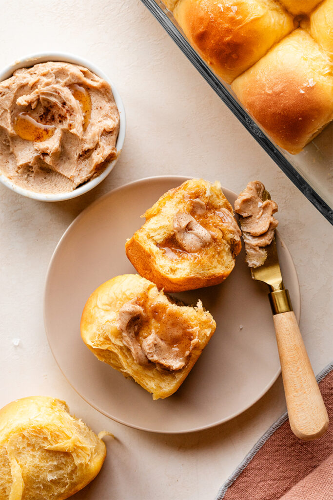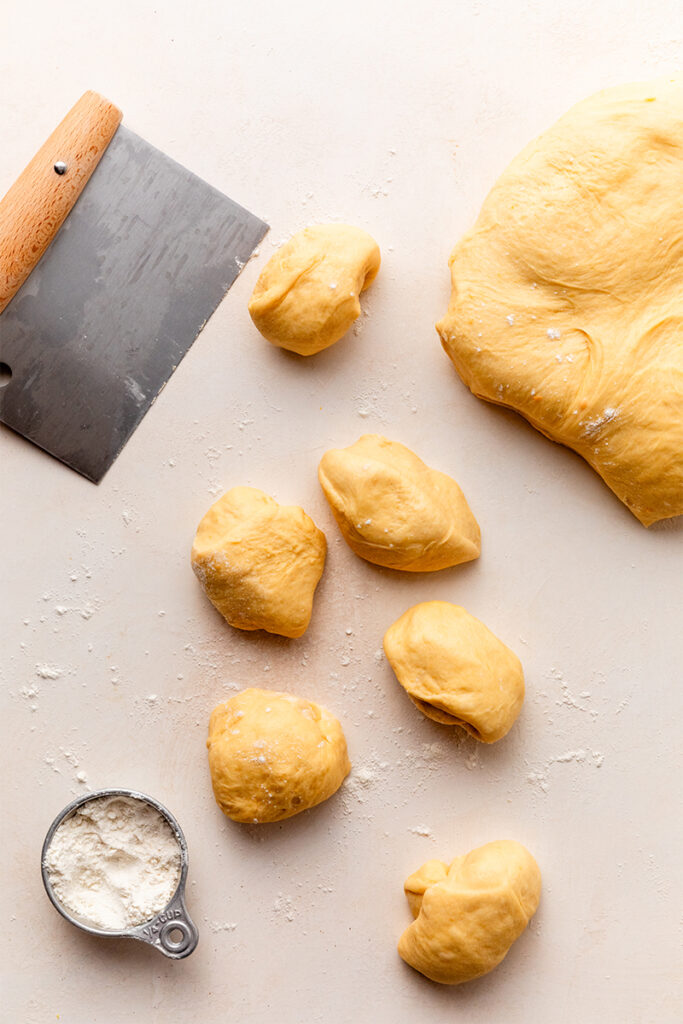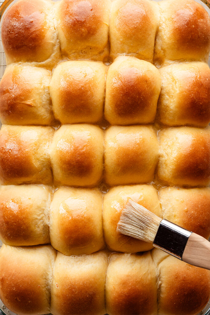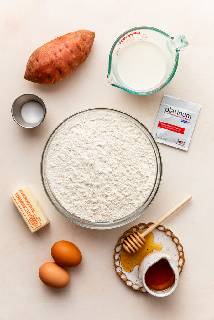 Blog > How to make Sweet Potato Dinner Rolls Find A Store How to make Sweet Potato Dinner Rolls Soft, fluffy, flaky, and delightfully tall, these sweet potato dinner rolls make the perfect addition to any holiday spread or cold weather meal. This recipe uses mashed sweet potatoes for flavor, texture, and natural sweetness, with Platinum Yeast from Red Star providing an exceptional rise. Potatoes, including sweet potatoes, are among the starchiest vegetables, and incorporating them into bread dough boosts the dough’s starch content. This enhances the bread’s ability to retain moisture, resulting in a soft, moist texture. While the starch from the sweet potato creates a naturally tender texture, we take it a step further by adding butter, eggs, and whole milk to make a rich dough that bakes into irresistibly pillow-soft rolls. These are some of the tallest, fluffiest dinner rolls I’ve ever baked! After kneading, the dough will be tacky and smooth and then boast an impressive rise. Deflate the risen dough by gently punching it down to release the air, then divide it into 20 roughly equal pieces. Take each piece of dough, stretch the top smooth, and pinch the bottom to seal it, ensuring the tops are round and smooth while the seams are secured underneath. Place the rolls in a greased baking pan. I usually use a 9×13-inch pan, but you can use a lined baking sheet or two 9-inch round or square pans if needed. Loosely cover the rolls and let them briefly rise again before baking. After baking, brush the warm rolls with melted butter and, if desired, sprinkle with flaky sea salt for a finishing touch. For an extra-special treat that’s sure to impress everyone at the dinner table, serve these rolls with homemade cinnamon butter. Sweet Potato Rolls Video Tutorial: Sweet Potato Dinner Rolls Soft, fluffy, flaky, and delightfully tall, these sweet potato dinner rolls make the perfect addition to any holiday spread or cold weather meal. Yield 20 rolls Print Recipe Pin Recipe 0 Reviews Ingredients1 medium (250-290g) sweet potato, peeled and chopped (to yield 1 cup (230g) mashed)3/4 cup (180ml) whole milk, warmed to about 110°F (43°C)1 (0.25oz) package (7g) or 2 1/4 teaspoons Platinum Yeast1/3 cup (113g) honey, divided2 large (100g) eggs, at room temperature5 tablespoons (71g) unsalted butter, softened1 3/4 teaspoons salt5 1/2 cups (715g) bread flour, plus more as needed2 tablespoons (28g) melted butter and flaky sea salt, for finishing (optional) InstructionsPrepare the sweet potato: Place the chopped sweet potato in a medium saucepan and add enough water to cover. Bring to a boil over high heat, then reduce the heat to medium-high and boil until the sweet potato is very soft and tender, about 10–12 minutes. Drain off the water, then mash the sweet potato as well as you can—a few small lumps are okay. Measure 1 cup (230g) of mashed sweet potato to use in the dough and set aside to slightly cool. (Do not use more than 1 cup in your dough. Discard or eat any leftover sweet potatoes.)Proof the yeast: Whisk the warm milk, yeast, and 2 tablespoons of honey together in the bowl of your stand mixer. Cover and allow to sit for 5 minutes. *If you do not own a stand mixer, you can do this in a large mixing bowl and in the next step, mix the dough together with a large wooden spoon/silicone spatula.Make the dough: Add the remaining honey, eggs, butter, mashed sweet potato, salt, and 1 cup (125g) flour to the yeast mixture. With a dough hook or paddle attachment, mix/beat on low speed for 1 minute. Stop and scrape down the sides of the bowl with a silicone spatula, then add the remaining flour. Beat on medium speed until the dough comes together and pulls away from the sides of the bowl, about 3 minutes. If the dough seems too wet to a point where kneading would be impossible, beat in more flour 1 tablespoon at a time until you have a workable dough. Dough should be soft and a little sticky, but still manageable to knead with lightly floured hands.Knead the dough: Keep the dough in the mixer fitted with a dough hook and beat on low speed for an additional 5 full minutes or knead by hand on a lightly floured surface for 5 full minutes. After kneading, the dough should feel soft and smooth. Poke it with your finger—if it slowly bounces back, your dough is ready to rise. 1st Rise: Lightly grease a large bowl with oil or nonstick spray. Place the dough in the bowl, turning it to coat all sides in the oil. Cover the bowl and allow the dough to rise in a relatively warm environment for 1–2 hours or until double in size.Grease a 9×13-inch baking pan.Shape the rolls: When the dough is ready, punch it down to release the air. Divide the dough into 20 equal pieces, about 65–75g each (doesn’t need to be exact!). Shape each piece into a smooth ball. Arrange in prepared baking pan.2nd Rise: Cover shaped rolls and allow to rise until puffy, about 30 to 45 minutes.Adjust oven rack to a lower position and preheat oven to 350°F (177°C).Bake the rolls: Bake for 25 minutes or until golden brown on top (internal temperature if taken with an instant-read thermometer should be 190°F), rotating the pan halfway through. If you notice the tops browning too quickly, loosely tent the pan with aluminum foil. Remove from the oven, brush with melted butter and sprinkle with flaky sea salt and allow rolls to cool for 15 minutes before serving.Cover leftover rolls tightly and store at room temperature for up to 3 days, or in the refrigerator for up to 1 week. Notes Freezing Instructions: You can freeze the baked dinner rolls. Allow them to cool completely, then place them in a freezer-safe container or bag and freeze for up to 3 months. Thaw in the refrigerator or at room temperature, then reheat as desired. If reheating the whole pan, lightly cover and reheat in a 300°F (150°C) oven for about 10 minutes or until warm. If you are planning to freeze the baked rolls, omit the melted butter and flaky sea salt finishing 