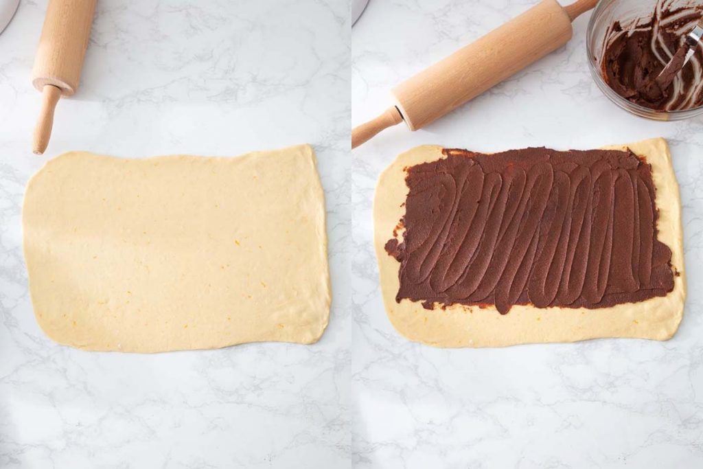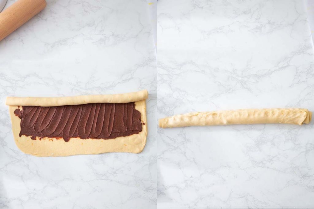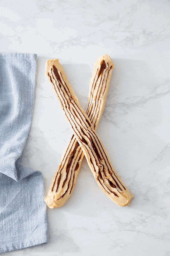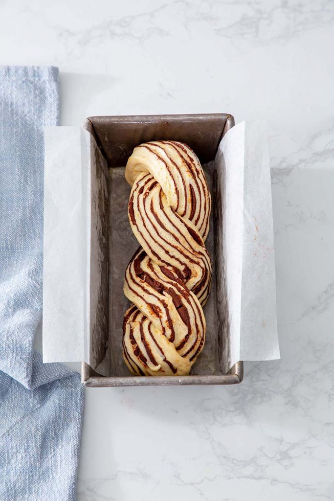 Blog > Spiced Chocolate-Orange Loaves Find A Store Spiced Chocolate-Orange Loaves Both delicious and versatile, our tender dough and bold, flavorful filling get a tasty loaf twist. Baked to golden brown perfection, each slice offers a showstopping swirl. Even better, this recipe makes two so you can share one and keep the other all to yourself. Spiced Chocolate-Orange Loaves Video Tutorial Watch video above for step-by-step shaping tutorial. Scroll down for printable recipe. See Spiced Chocolate-Orange Knots recipe and video for detailed dough-making step-by-step tutorial. After dough has risen, roll out and spread filling evenly over dough – leaving border around 3 edges. Roll dough, jelly roll style, then pinch seam to seal. Wrap and refrigerate for 20 minutes. Cut dough in half length-wise, make an ‘X’ with the strips and twist halves around each other. Place twisted loaves in prepared bread pans, tucking end under. Cover and let rise. After rising, brush with egg wash then it’s time to bake! Place on wire rack to cool; dust with confectioners’ sugar, if desired. Enjoy eating this sweet bread with family, or share a loaf with friends. Perfect for a holiday breakfast, and easy enough for any day! Spiced Chocolate-Orange Loaves Both delicious and versatile, our tender dough and bold, flavorful filling get a tasty loaf twist. Baked to golden brown perfection, each slice offers a showstopping swirl. Even better, this recipe makes two so you can share one and keep the other all to yourself. Yield 2 loaves Print Recipe Pin Recipe 0 Reviews IngredientsDough3 1/4 to 3 3/4 cups (406 to 469g) all-purpose flour, divided1/4 cup (55g) firmly packed light brown sugar1 (0.25-ounce) package (7g) Platinum Yeast 2 teaspoons (6g) kosher salt1 cup (240g) whole milk1/3 cup (76g) unsalted butter, softened1 teaspoon (5g) tightly packed orange zest1 (50g) large egg, room temperatureFilling6 tablespoons (84g) unsalted butter, room temperature (see Note1)1/3 cup (73g) firmly packed light brown sugar2 tablespoons (10g) Dutch process cocoa powder1 tablespoon (6g) ground cinnamon1/4 teaspoon ground cloves 1/4 teaspoon packed orange zest1/8 teaspoon kosher saltTopping/Garnish1 (50g) large egg, lightly beaten (for egg wash)1 tablespoon (15g) water (for egg wash)Garnish: confectioners' sugar InstructionsFor dough: In the bowl of a stand mixer fitted with the paddle attachment, beat 1 cup (125g) flour, brown sugar, yeast, and salt at low speed just until combined.In a medium saucepan, combine milk, butter, and orange zest. Cook over low heat, stirring occasionally, until butter is melted and an instant-read thermometer registers 120°F (49°C) to 130°F (54°C). Add warm milk mixture to flour mixture; beat at medium speed for 2 minutes. Add egg; beat at medium-highspeed for 2 minutes. With mixer on low speed, gradually add 2 1/4 cups (281g) flour, beating just until combined and stopping to scrape sides of bowl. Switch to the dough hook attachment. Beat at medium-low speed until a soft, elastic dough forms, 6 to 12 minutes, stopping to scrape sides of bowl and dough hook; add up to remaining 1/2 cup (63g) flour, 1 tablespoon (8g) at a time, if dough is too sticky. (Dough may still stick slightly to bottom and sides of bowl. Dough should pass the windowpane test; see Notes2.) Turn out dough onto a clean surface, and shape into a ball.Spray a large bowl with cooking spray. Place dough in bowl, turning to grease top. Cover and let rise in a warm, draft-free place (75°F/24°C) until doubled in size, 30 to 45 minutes. Punch down dough; cover and let stand for 10 minutes.For filling: In a medium bowl, stir together butter, brown sugar, cocoa, cinnamon, cloves, orange zest, and salt with a silicone spatula until well combined. Spray 2 (8½x4½-inch) loaf pans with cooking spray. Line pans with parchment paper, letting excess extend over sides of pans. (See Notes3.) Divide dough in half. On a lightly floured surface, roll half of dough into a 13×10-inch rectangle (about 1/8 to 1/4 inch thick) with one long side closest to you. Using a small offset spatula, dot half of filling on top of dough, and spread into an even layer, leaving a ½-inch border on both short sides and one long side. Starting on long side without border, roll up dough, jelly roll style, and pinch seam to seal. Wrap in plastic wrap, and refrigerate for 20 minutes. Repeat with remaining dough and remaining filling. Wipe hands and surface clean as needed. Preheat oven to 350°F (180°C).Unwrap and gently stretch 1 dough log to 14 inches long, if necessary. Place seam side down; using a sharp serrated knife, cut in half lengthwise, wiping knife clean between cuts. Turn cut side up, and place halves in an “X.” Twist together top half of “X” twice; pinch ends together, and tuck under. Repeat with bottom half of “X.” Repeat with remaining dough. Place in prepared pans, making sure to keep cut sides up and ends tucked under. Cover and let rise in a warm, draft-free place (75°F/24°C) until puffed and dough holds an indentation when poked, 25 to 30 minutes.Make egg wash: In a small bowl, whisk together 1 egg and 1 tablespoon (15g) water. Brush tops of loaves with egg wash. Bake for 20 minutes; rotate pan, and loosely cover with foil. Bake until golden brown and an instant-read thermometer inserted in center registers 190°F (88°C), about 8 minutes more. Let cool in pans for 10 minutes. Using excess parchment as handles, remove from pans, and place on wire racks. Serve warm or at room temperature. Garnish with confectioners’ sugar, if desired, just before serving. Notes Unlike softened butter, room temperature butter should provide no resistance when pressed with a finger. At this point, the butter is softened enough to easily spread over dough. To use the windowpane test to check dough for proper gluten development, pinch off (don’t tear) a small piece of dough. Slowly pull the dough out from the center. If the dough is ready, you will