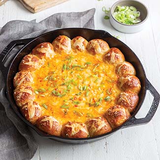 The best part about baking is sharing the final product with friends and family. We’ve hand-picked 12 of our favorite baking appetizer recipes that are certified crowd-pleasers everyone will rave about. From skillet pretzel bread with a savory cheese dip to goat cheese and harissa babka, there’s a flavor profile for every occasion. – COLLECTION – Our Favorite Appetizers to Share Skillet Pretzel Bread with Cheese Dip Pizza Pull-Apart Rolls Jalapeño Cheddar Soft Pretzels Ham Pineapple Pizza Pull Apart Bread Goat Cheese-Harissa Babka Caprese Pull-Apart Bread Ham and Gruyère Crescent Rolls Pizza Twist Bread Lemon Artichoke Pesto Chicken Flatbread Everything Bundt The Bagel Monkey Bread Lemon Roll Wreath with Gorgonzola Dip Cheesy Garlic Pull Apart Rolls